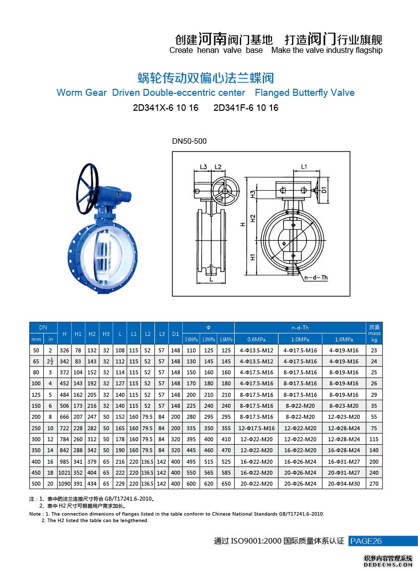 2手動雙偏心雙向軟密封法蘭蝶閥2D341X D342X