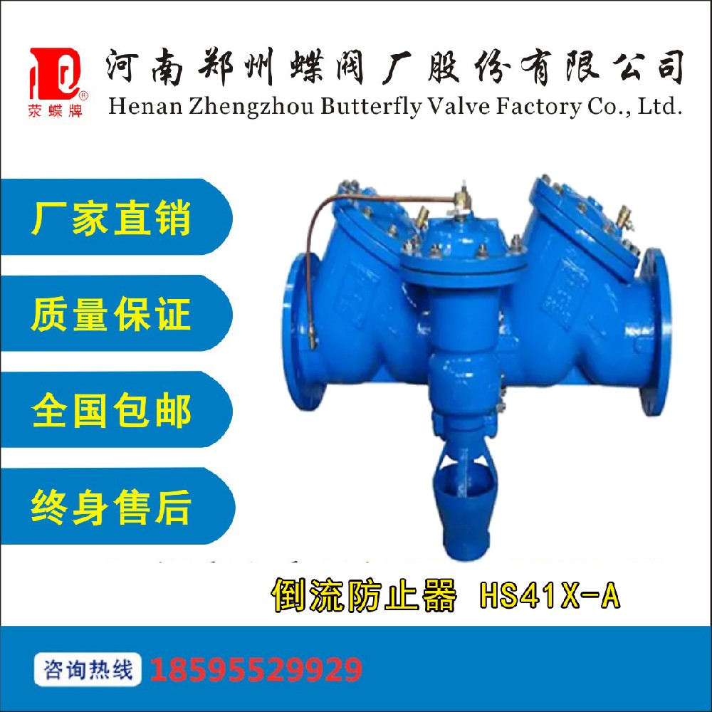河南鄭州蝶閥廠股份有限公司的HS41X回流防止器(防污隔斷閥)由兩個分離的回流閥和一個液壓傳動